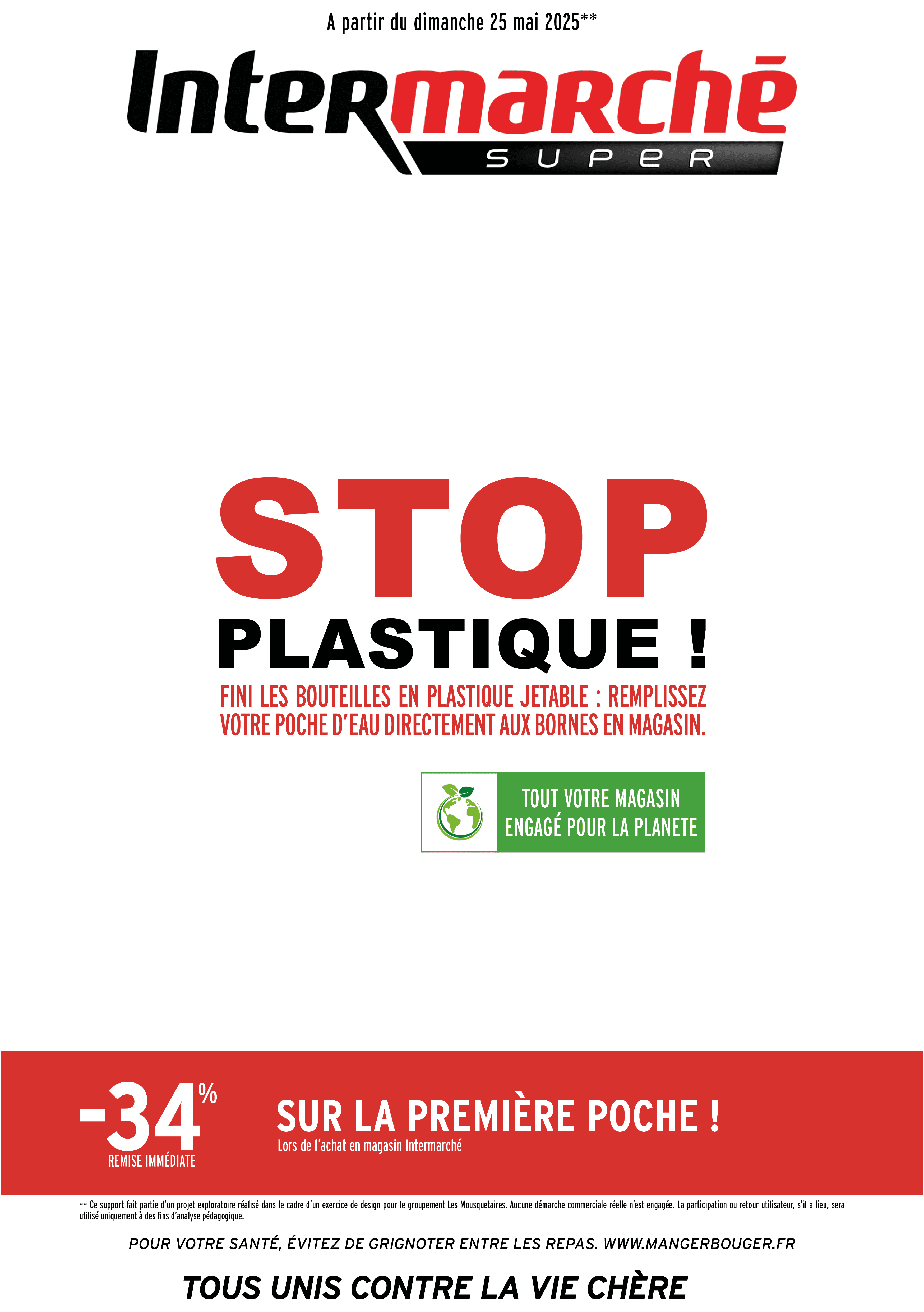 Supprimer la bouteille plastique, c’est le défi ambitieux que Les Mousquetaires ont confié à notre équipe de quatre étudiants lors d’un projet d’école de huit semaines.